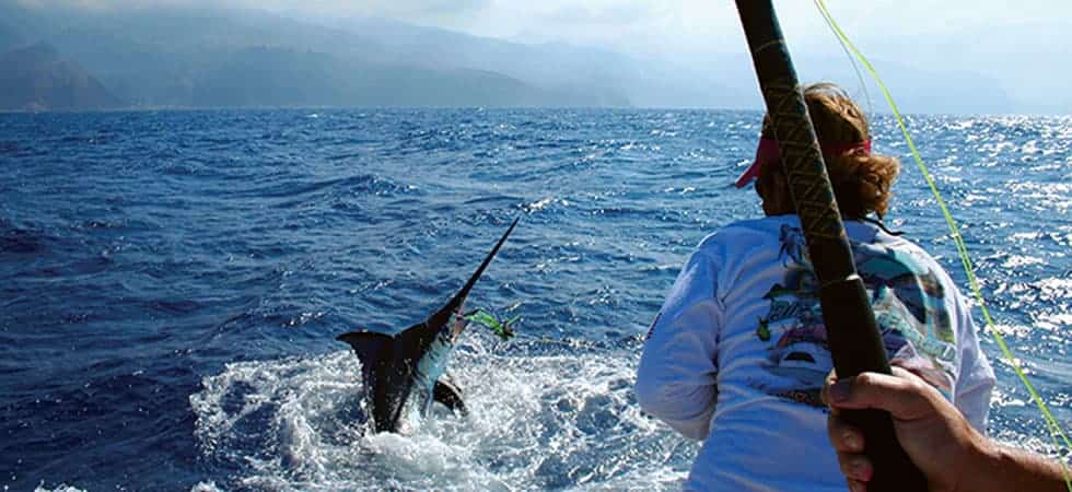 A apenas 5 minutos do cais, existem magníficas zonas de pesca onde a profundidade da água atinge os 1000 metros.